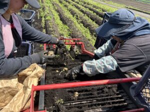 どうもこんにちは川畑ファーム代表の川畑です5月に入りGWも終わりいよいよジャガイモ堀りが始まりました(^^)今年は早く取るために早めに植え多少霜にやられてしまいましたが生育遅れもなく良いジャガイモが入